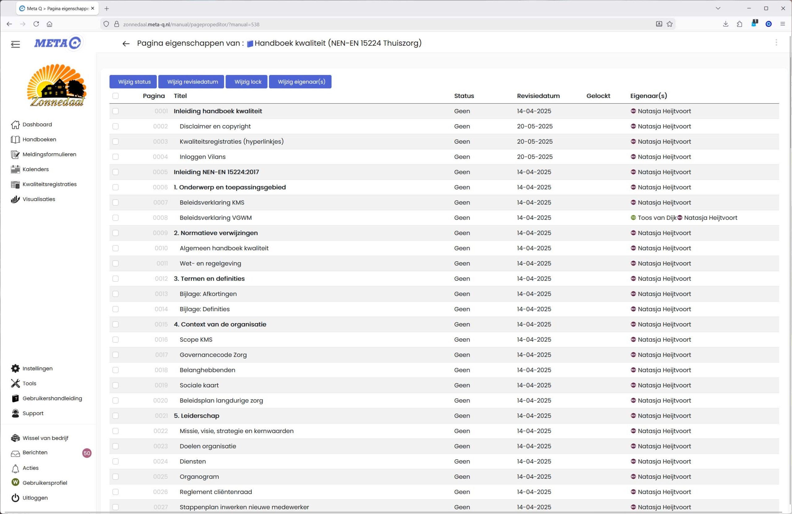 - Document en versie beheer waar gewenst. Instelbaar per handboek.